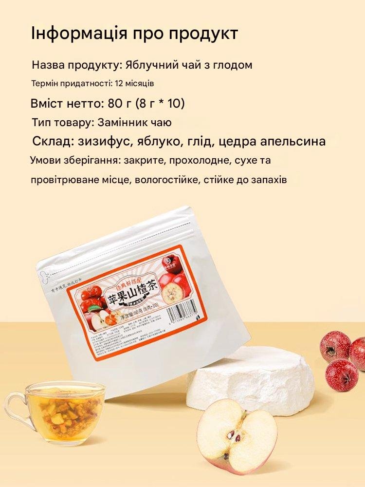 Чай на основі яблука та глоду містить натуральні компоненти, які допомагають підтримувати обмін речовин і покращують роботу травної системи.