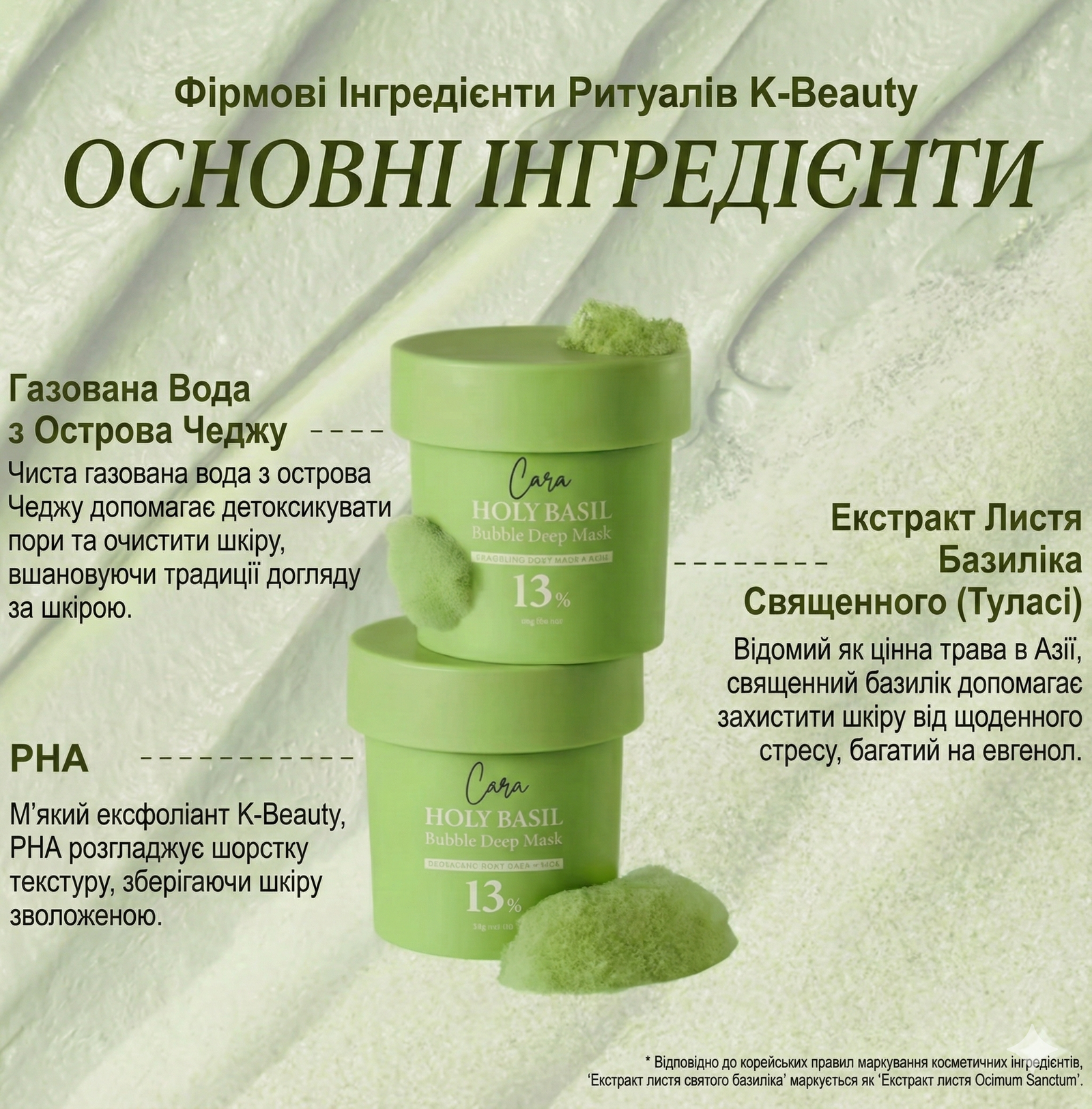 CARA Holy Basil Bubble Mask створена за ритуалами K-Beauty та містить: